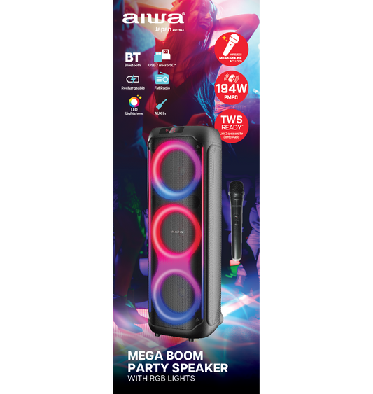 Light up every party with booming sound and vibrant RGB effects. The AIWA MEGA BOOM...