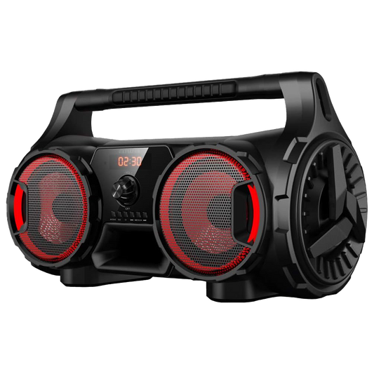 Aiwa Boom-Box Party Speaker with RGB Lights, Bluetooth, FM, USB, AUX & Wireless Microphone (AWTK-226B)