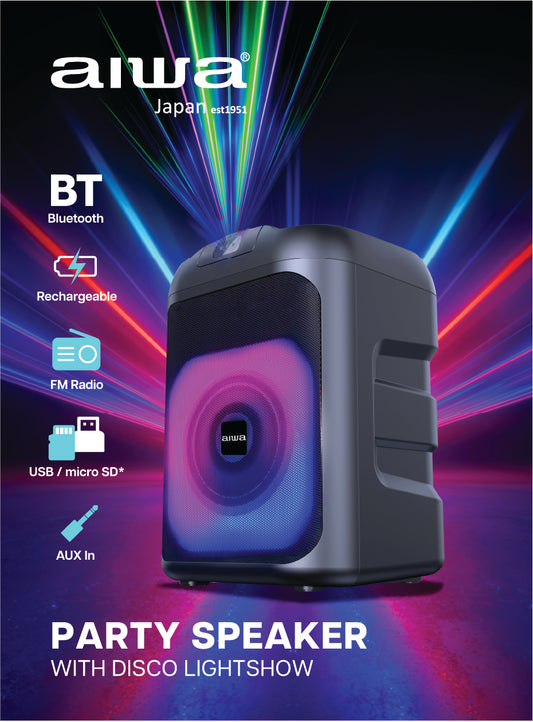 Meet your ultimate party companion — the AIWA Party Speaker with Disco LightShow. Combining booming 40W Bluetooth...