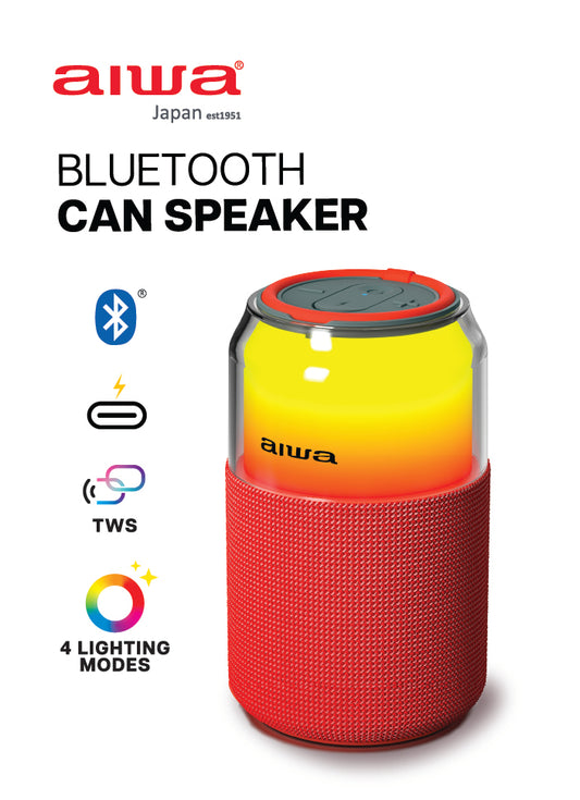 AIWA Bluetooth Can Speaker - Compact Wireless Speaker with LED Lights, USB-C & TWS Pairing (AWFS86-RED)