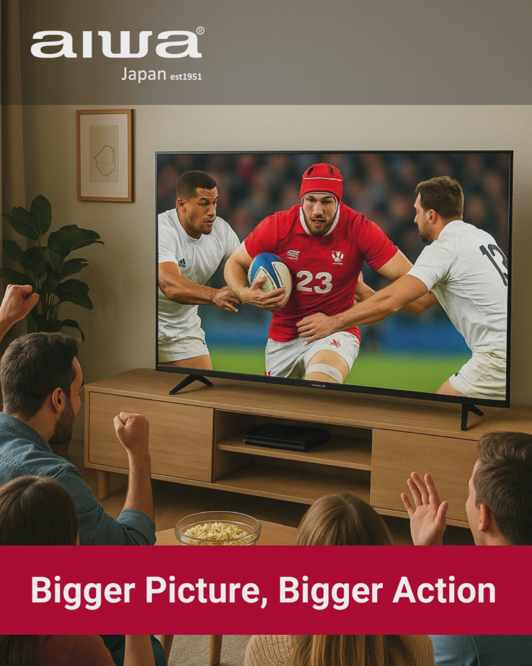 The AIWA 65” UHD Smart TV (Model: AWS650W) delivers brilliant 4K clarity, intuitive smart features, and a sleek modern design. Enjoy your favourite shows, sports, and movies in stunning detail with immersive audio-visual performance. Whether wall-mounted or stand-supported, the AWS650W blends perfectly into any home theatre setup.