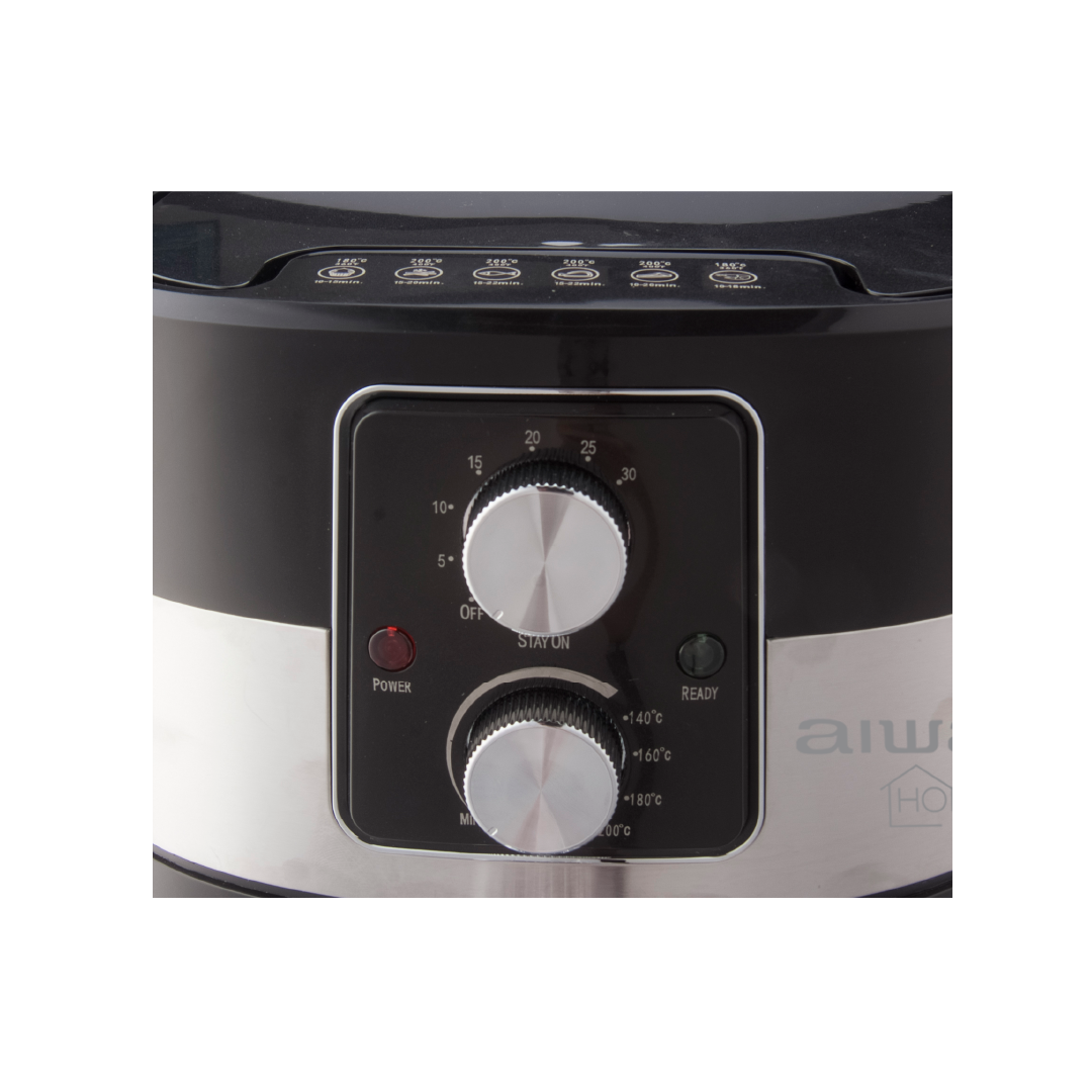 The AIWA Air Fryer AWFD7003 is designed to deliver powerful performance with a sleek, compact design. Featuring a 1300W power output and a 3-liter capacity, it is perfect for small to medium-sized meals. The analog controls, including a timer and an on/off indicator, offer ease of use. With an adjustable temperature range from 80°C to 200°C and overheating safety, it ensures reliable and versatile cooking. Constructed from durable plastic and stainless steel, this air fryer combines functionality with style.