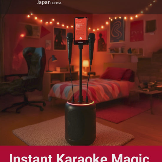 The AIWA Bluetooth Karaoke Speaker System (Model: AKM-0001) is your ultimate all-in-one entertainment companion. With dual microphones, Bluetooth playback, and a vibrant color LED light ring, this system is perfect for house parties, family nights, and spontaneous sing-offs. Engineered with simplicity and style in mind, the speaker features a built-in phone holder and intuitive control panel for maximum convenience.