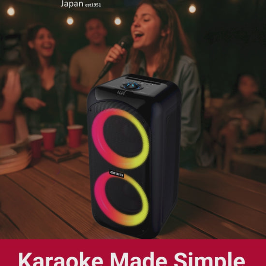 The AIWA Portable Karaoke Speaker APS-6018 is your all-in-one party companion, delivering powerful sound with Bluetooth wireless audio and vibrant LED lighting. With TWS Ready pairing, you can connect two speakers for an even bigger sound experience.