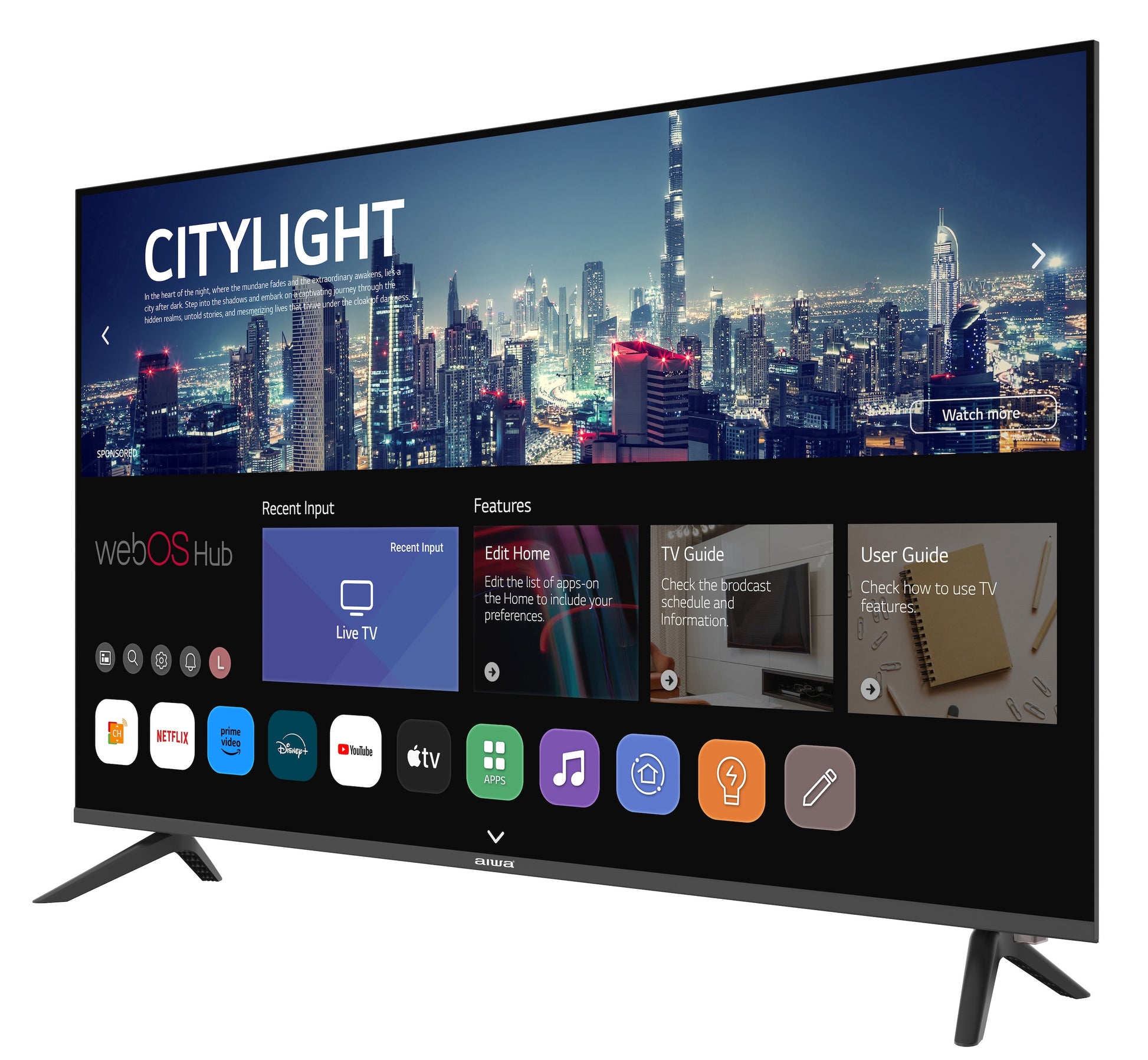 Experience cinematic entertainment at home with the AIWA 55β UHD Smart TV powered by webOS Hub β featuring stunning 4K UHD resolution, seamless smart connectivity, and advanced voice control for effortless viewing.