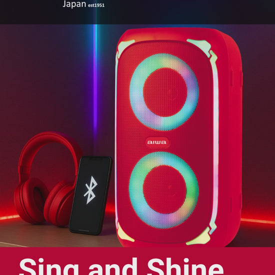 The AIWA Sound Box Bluetooth speaker with microphone is designed for fun, easy listening at home or at parties. Enjoy Bluetooth wireless audio, dynamic LED lightshow effects, FM radio and playback from AUX, USB and microSD, plus TWS stereo pairing and convenient rechargeable use.